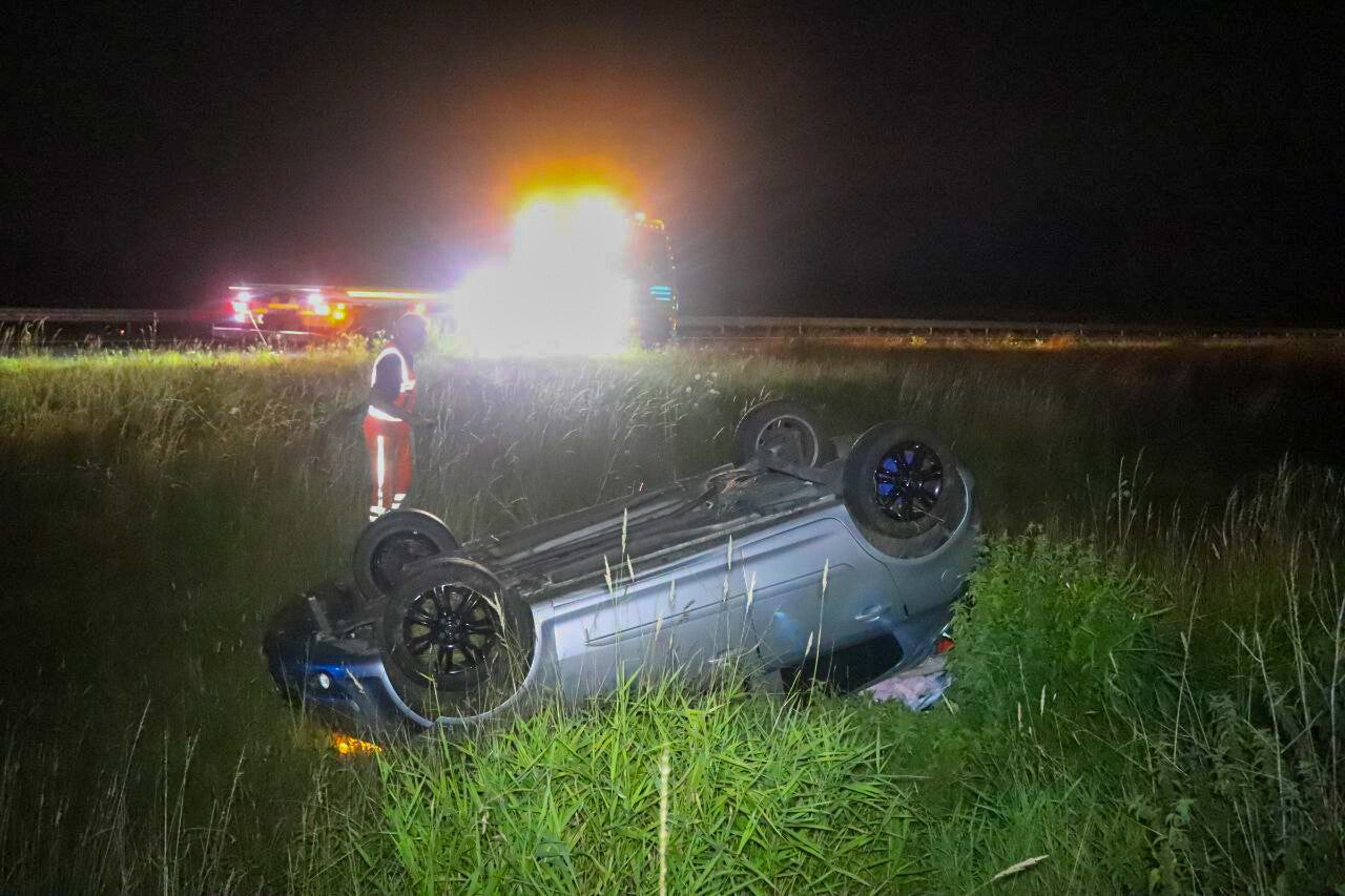 Ongeval gevaarlijke stoffen Weverstraat Uden Auto op kop in sloot A50 Nistelrode (VIDEO)