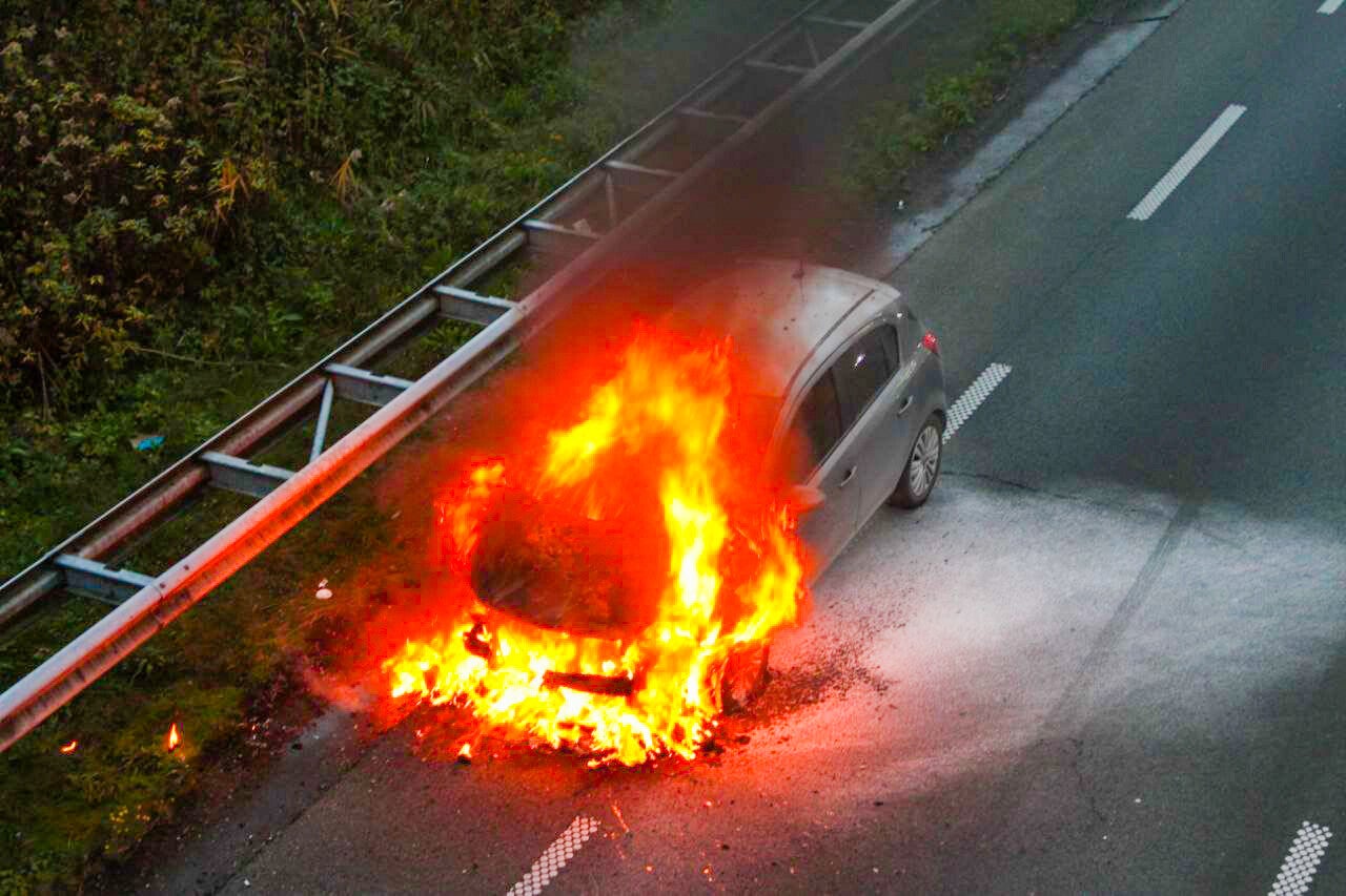 Felle autobrand zet ook berm in brand A50 Sint-Oedenrode (VIDEO)
