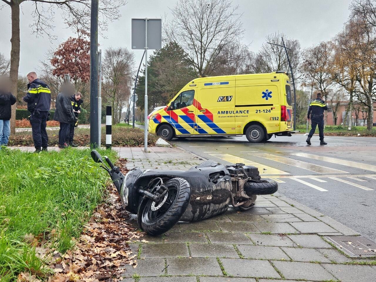 De scooterrijder kwam bij de botsing hard ten val en is door de ambulancedienst ter controle overgebracht naar het ziekenhuis. De fietser bleef ongedeerd. Over de oorzaak van de aanrijding is nog niets bekend.