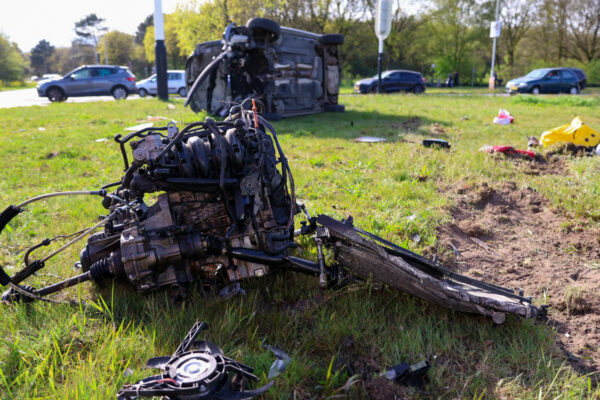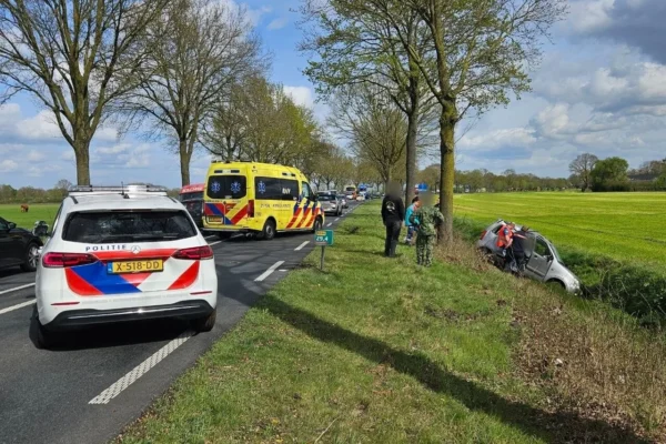 Een auto met daarin twee inzittenden is vrijdagmiddag 10 april op de Rondweg Volkel de N264 van de …