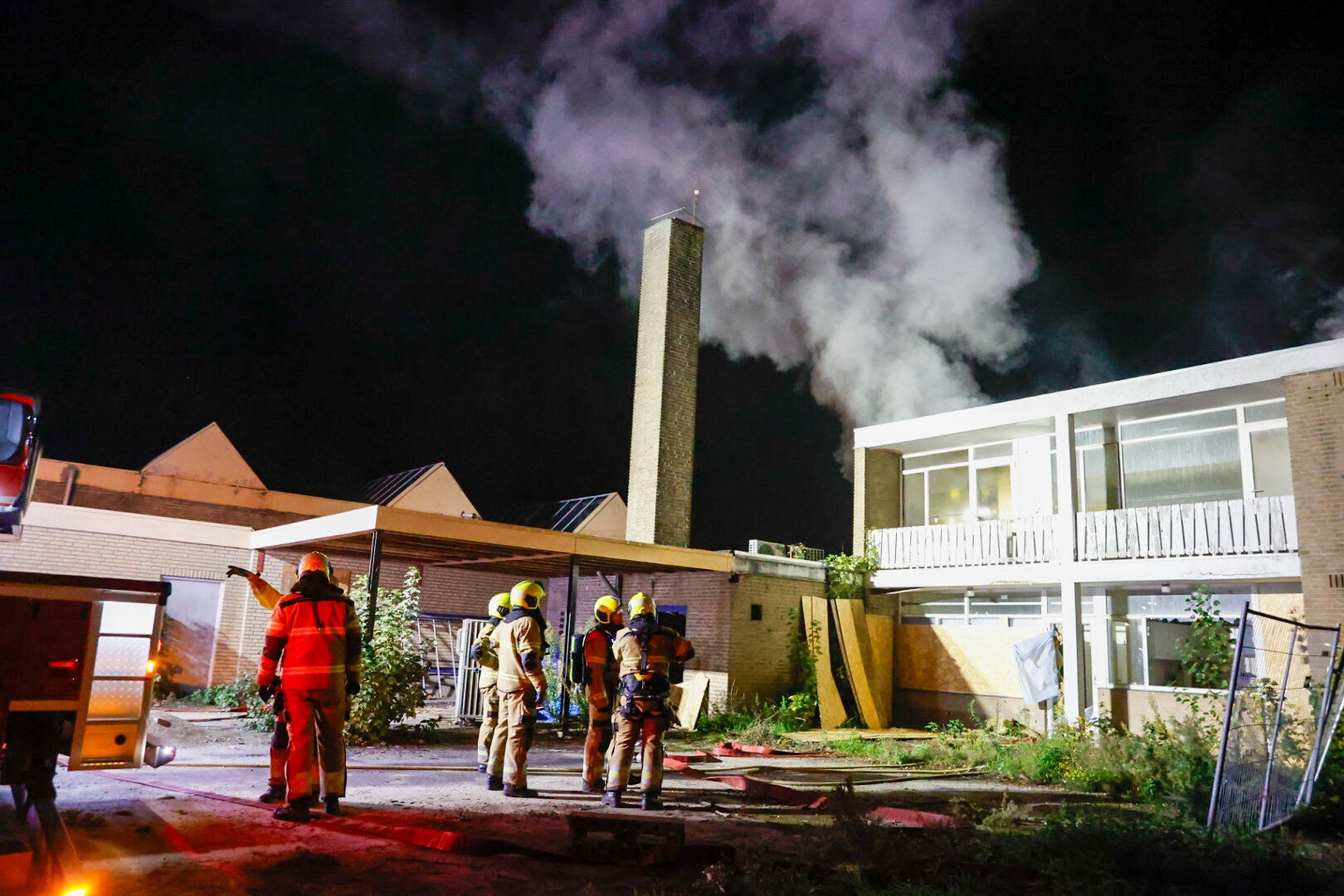 De brandweer rukte met een tankautospuit, een ladderwagen en een waterwagen uit om het vuur te bestrijden. Om het pand te kunnen betreden, werden ruiten ingeslagen en houten delen verwijderd.