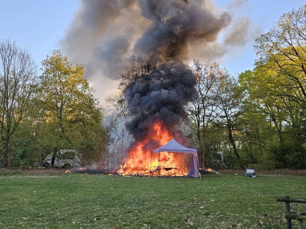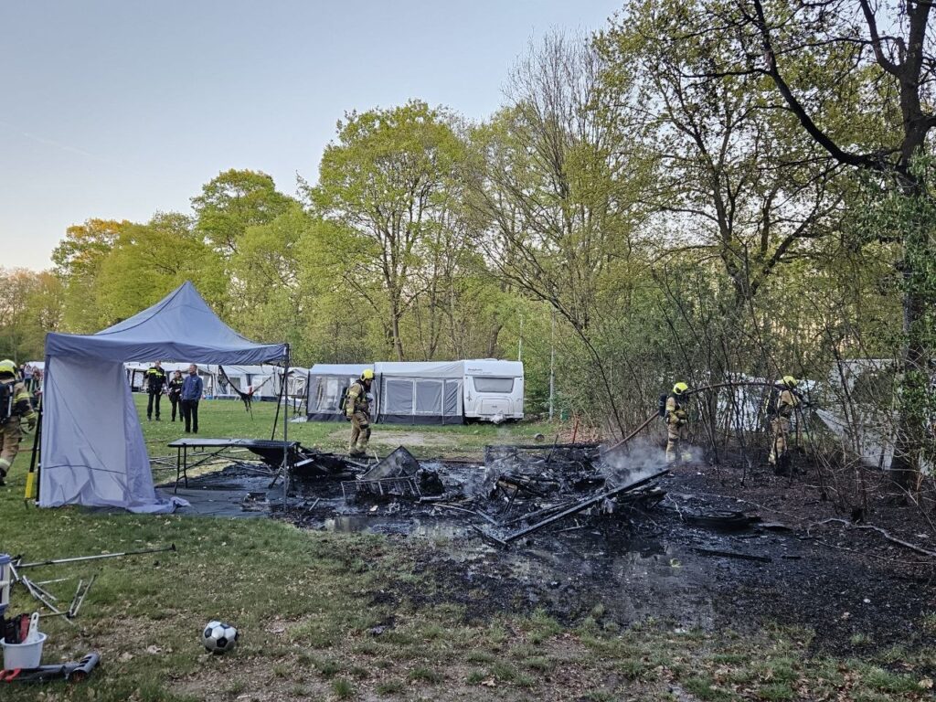 Felle brand legt caravan op camping in Herpen in de as