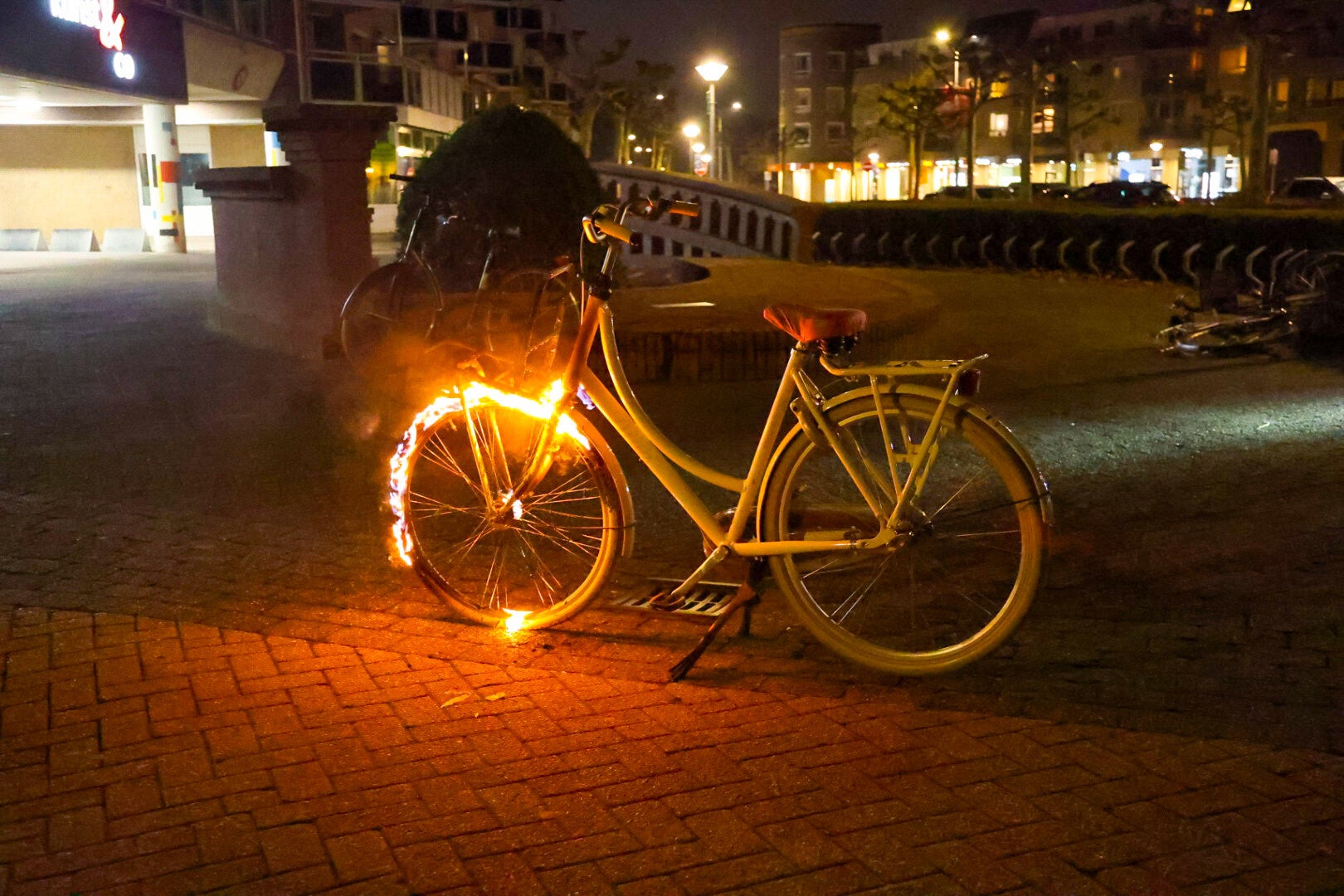 De brandweer werd zondagavond met spoed opgeroepen voor een fiets in brand aan het mondriaanplein in Uden. Een jongedame had haar fiets smorgensvroeg bij de bibliotheek gestald om naar de knoerissen te gaan voor het hofkapel. Toen ze savonds naar huis wilde gaan trof ze nietsvermoedend haar verbrandde fiets aan. Onbekenden hadden haar fietsmand in brand gezet waarna ook haar voorband in brand vloog. De politie heeft met een brandblusser de fiets geblust. De jongedame is samen met haar fiets opgehaald door haar familie.